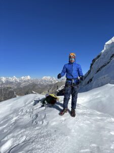 My physical and mental stamina were truly put to the test during the last hour that I can recall. We had already ascended to a height of around 6000 meters, and the air had become thinner. Every two to three minutes, I would have to catch my breath. I was growing impatient and wanted to get to the top so that the wretched ascent could stop. On multiple instances, I’d been extremely close to giving up before talking myself out of it. I kept telling myself that it would be a shame to give up as I was only a few meters from the summit. I held my cool and took deep breaths. My uncle recommended deep breathing to me, saying it helped him in climbing Mount Everest. At precisely 7 a.m. on May 30, 2024, I finally reached the summit of Mount Lobuje East after much exertion and mental encouragement. My guide offered me to also climb the Lobuje West Peak, which would have required an additional hour of climbing and an additional 100 meters of altitude. To reach Lobuche West, one had to traverse a 20-meter crevasse and then ascend a straight wall. Since there were no ladders available, the only way to bridge a crevasse was to jump, and I didn’t think I had the strength to jump 20 meters without falling into the crevasse. I now regret turning him down and believe that I should have taken my chances.